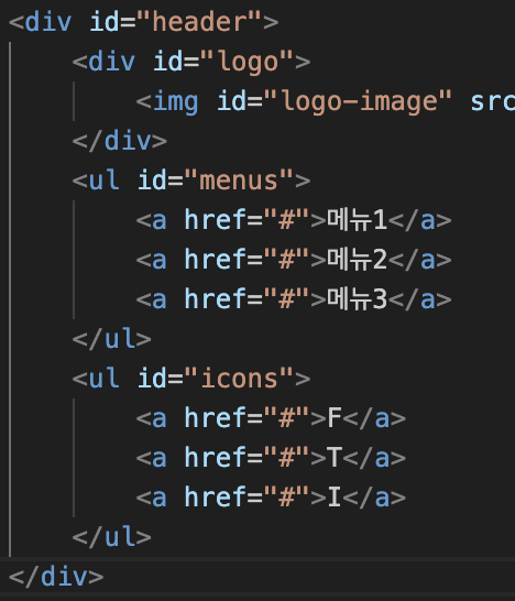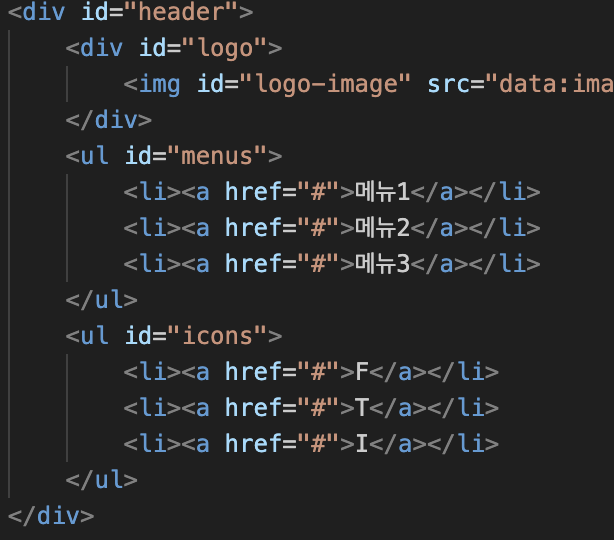 그럼 menus 박스와 icons 박스를 div에서 'ul'로 바꿀 것인데, ul은 항상 li와 같이 사용됨 : 이는 즉, ul 태그 안에 li 태그 3개와 각각의 li 태그 안에 a 태그가 있게 됨