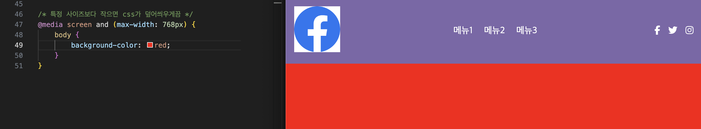 그러면 flex가 생긴 가장 큰 이유가 반응형이였음 : 반응형은 다시 무슨 의미가 되는가? : 브라우저 사이즈가 '얼마'보다 작으면 css 파일이 덮어씌워졌으면 좋겠다는 의미였음 : @media 사용 : 태블릿과 모바일의 경계 : 768px