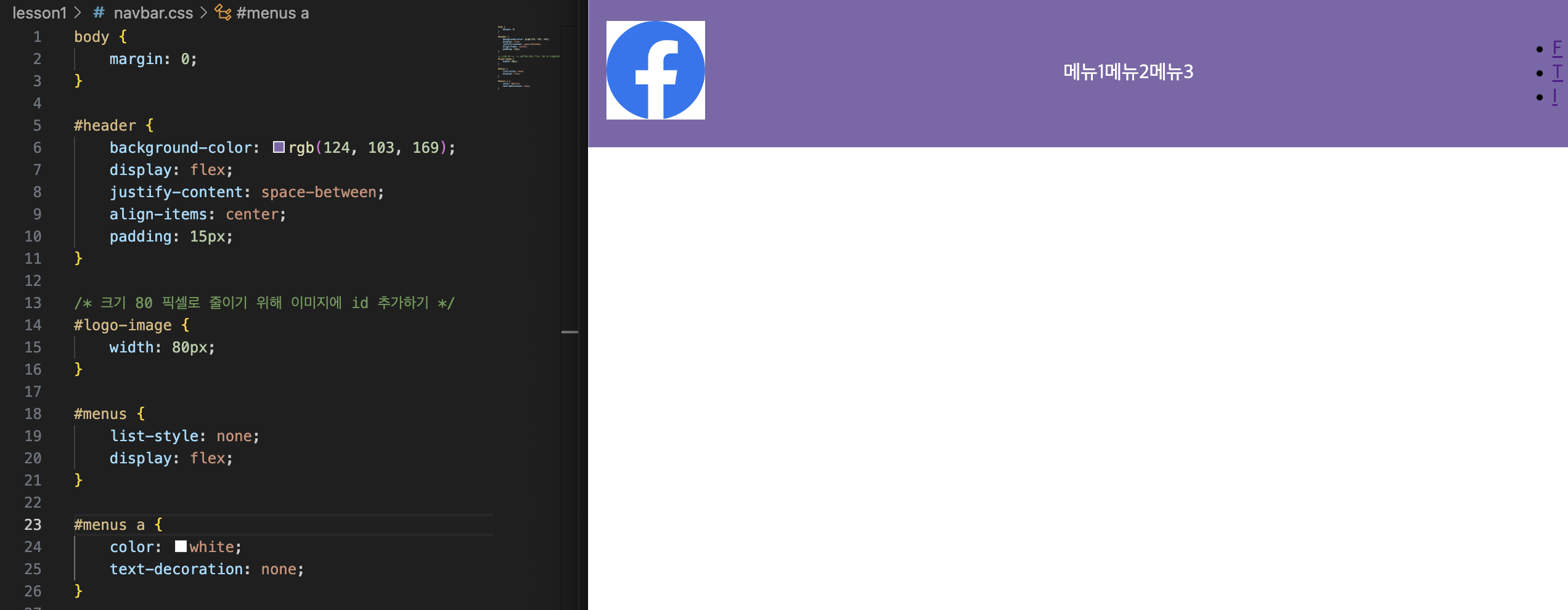 지금까지 배운 것들을 통해 간단한 navbar를 만들어볼 것