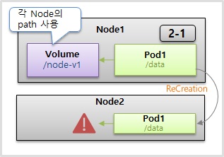 - 그래서 이렇게 파드가 다른 노드로 스케줄링되면 이전 노드의 데이터에 접근할 수 없다는 치명적인 단점이 있다.