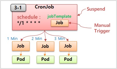 - 스케줄링과 매뉴얼: schedule 설정에 따라 주기적으로 실행되지만, kubectl create job --from=cronjob 명령을 통해 필요할 때 즉시 수동 실행(Manual Trigger)도 가능하다.