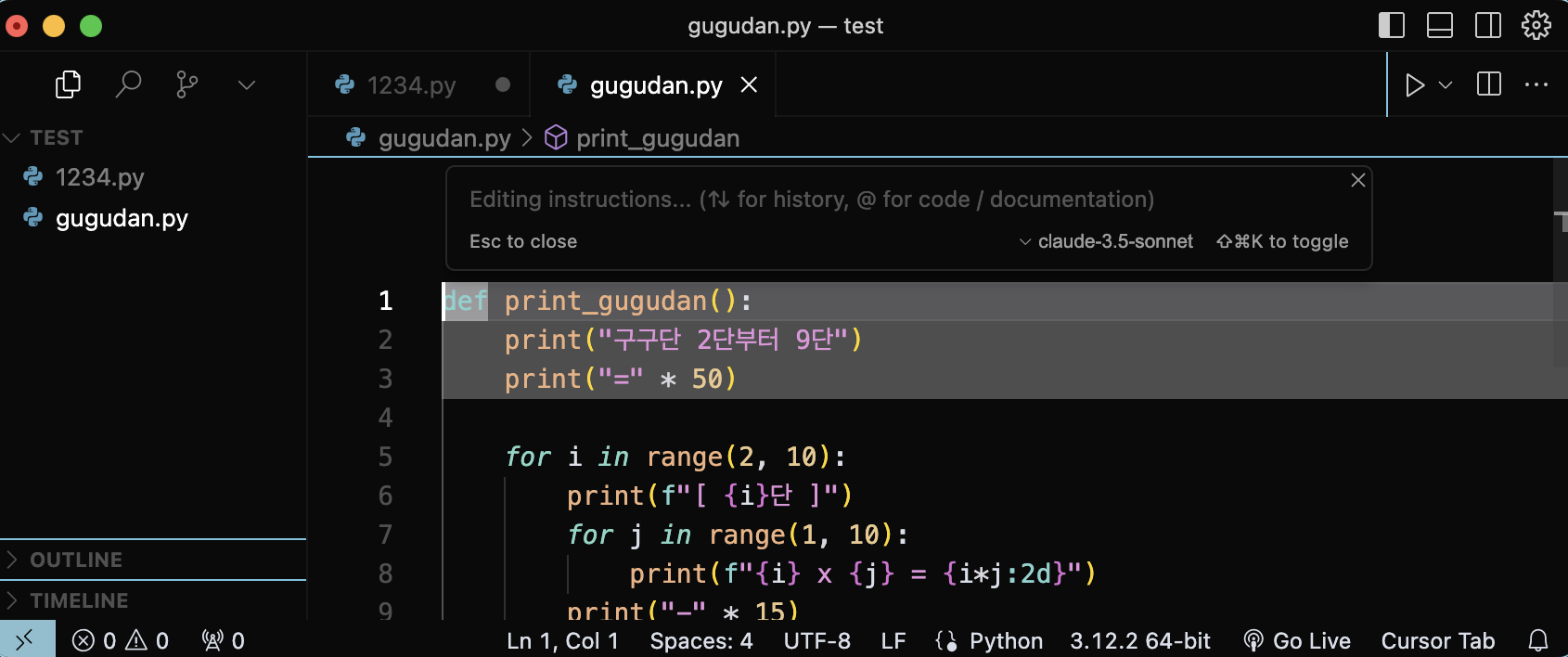 여기에 원하는 수정 방향을 입력하면, 해당 선택 부분에만 코드 수정이 진행되는 기능